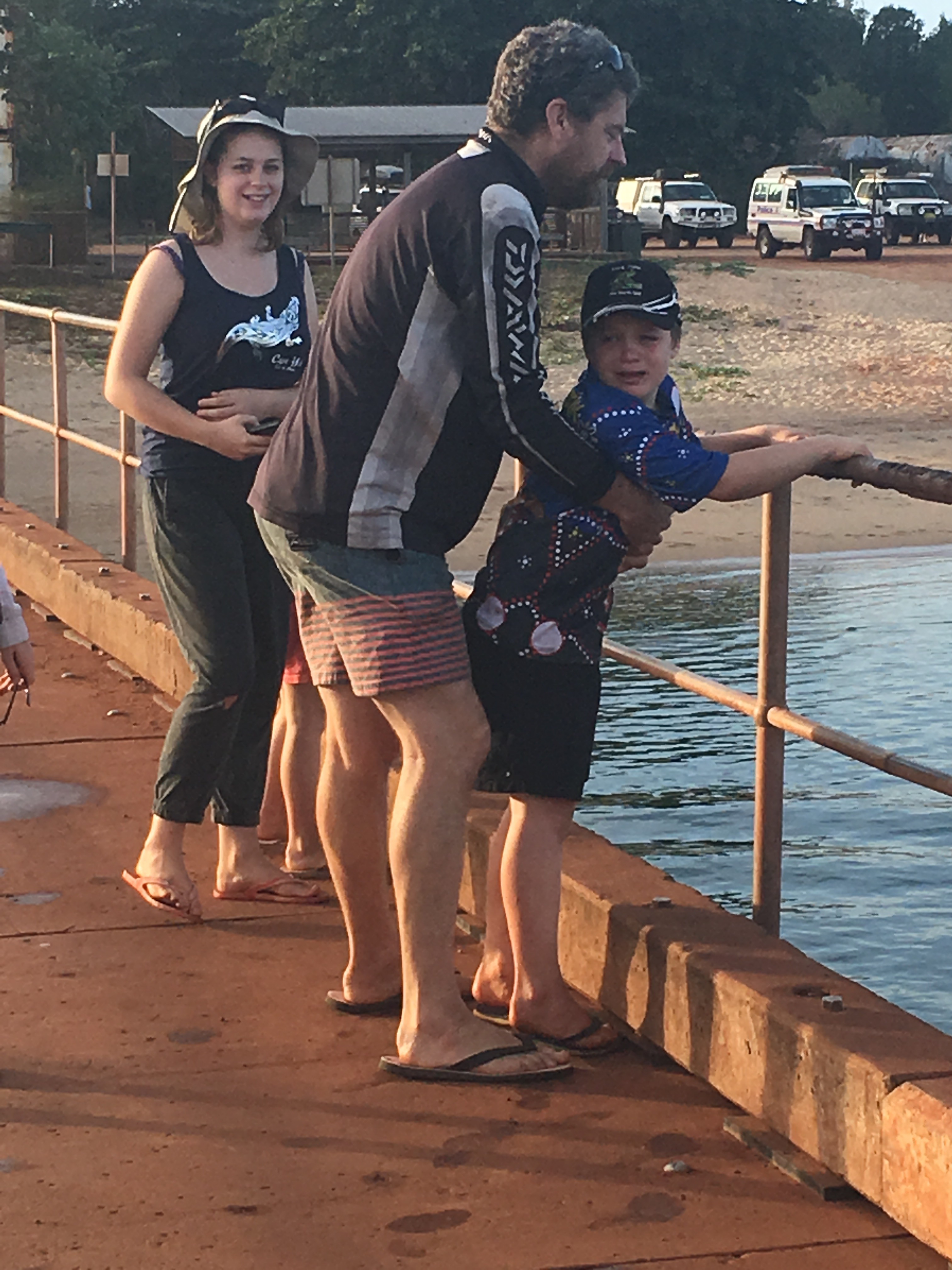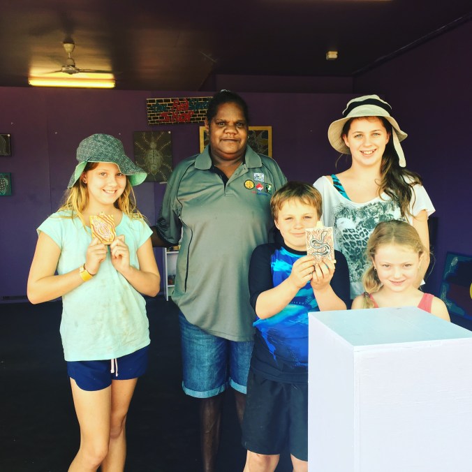 Hopevale was a lovely, picturesque indigenous community just North of Cooktown. We needed to stop in there to ask permission to visit Elim Beach, and I’m so glad we did!! Hopevale has a new cultural and arts centre with a little shop attached. We were invited in to watch some indigenous artists at work, and they happily talked to the kids and patiently answered Rohan’s questions. Rohan has become enamoured with Indigenous culture and has been lapping it up big time on this trip. I think he would be suited to their traditional, nomadic lifestyle and wants to learn all he can about the culture.
