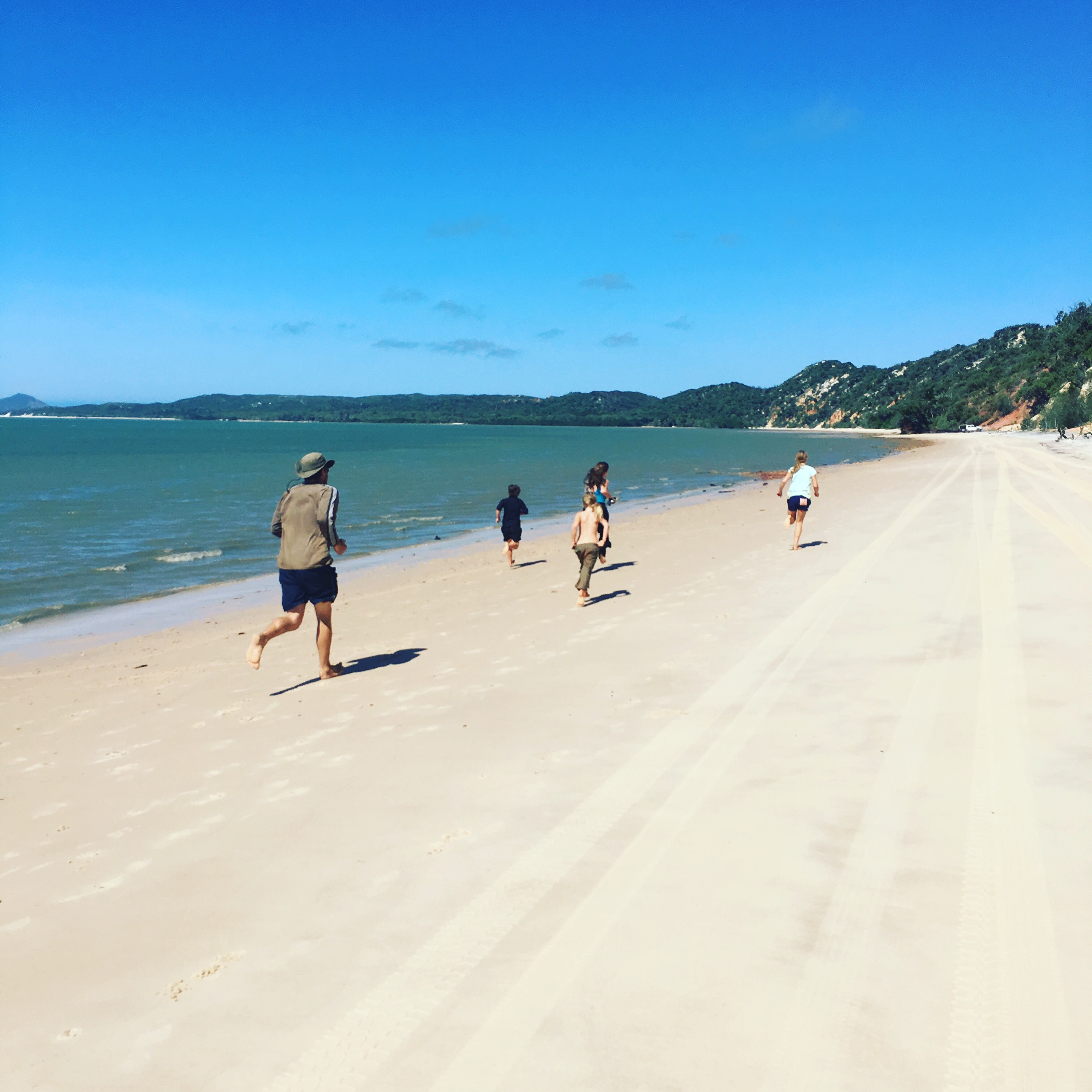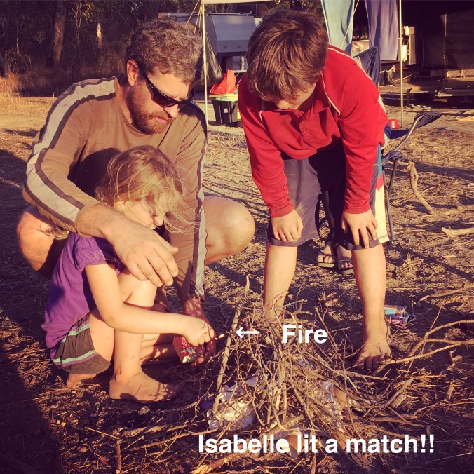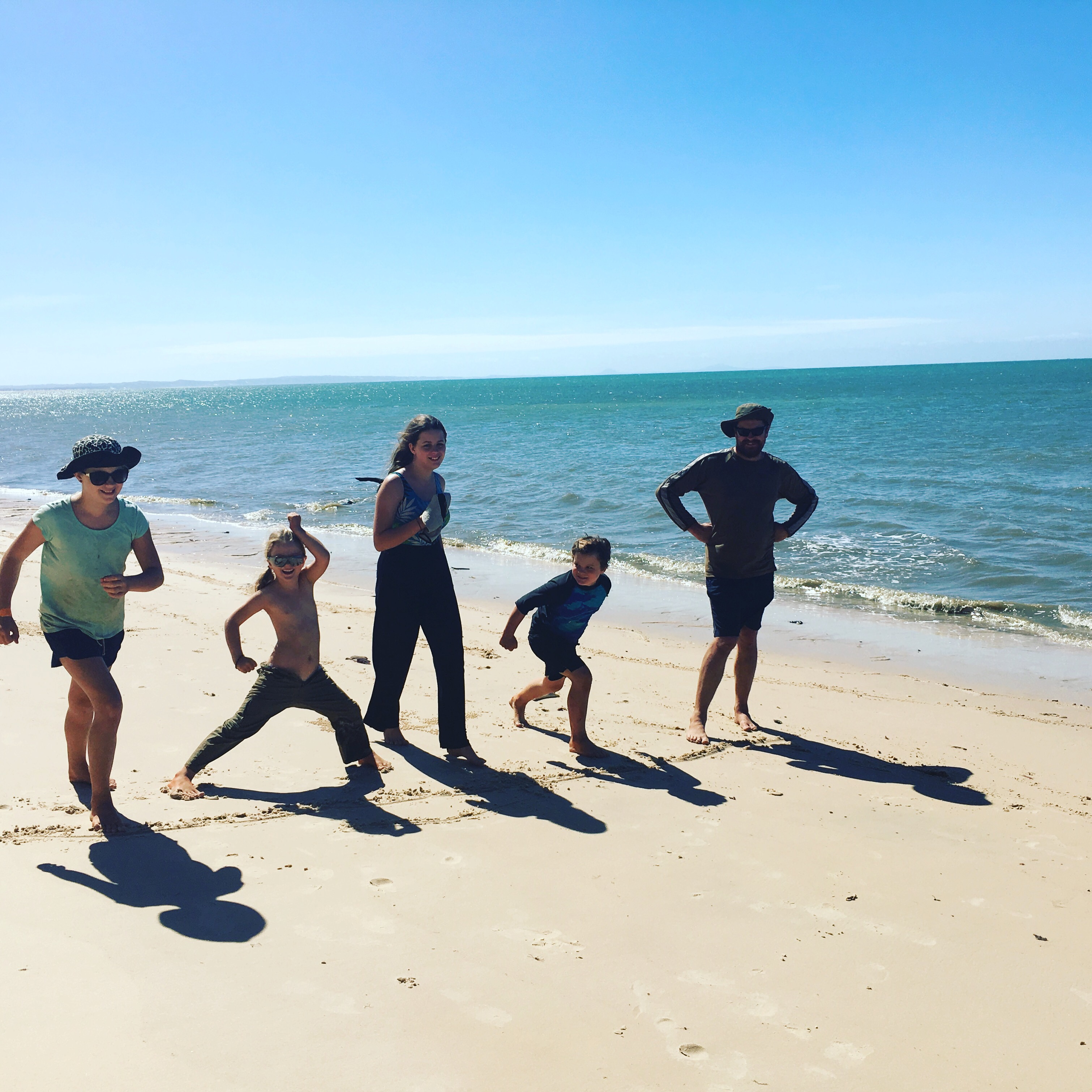 We had a picnic on the beach, and the kids explored the area and played happily in the sand. We went for a walk then Ben and the kids had a 500m race back up the beach to our car. If any of the kids won the race, the prize was a Mars Bar Icecream for everyone (they were in the freezer in the back of Frankie). If Ben won the race, then the kids had to wait till we were back at camp, in the vicinity of their toothbrushes, till they could have their ice cream. Amazingly, Ben did not win!! He reckoned that he was trying his hardest, the well-being of his children’s dental health at stake, but he just couldn’t beat Jazzy. Unfortunately for the kids, they didn’t beat Ben either. Ben and Jazzy finished in a dead tie. Rohan started off like a firecracker and quickly tapped out. Isabelle isn’t really into sweet foods, so she put in a half-hearted effort and her running turned into skipping before the 20m mark. Kylah and Jazzy were both in the lead for 75% of the race, but Ben steadily gained on them, and Jazzy was the only one left with any endurance to keep up with him for the last 50m.